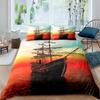 Nautyczny Statek Żaglowy Król Królowa Poszwa na Kołdrę Szary Piracki Statek Zestaw Pościeli Styl Retro Poszwa na Kołdrę Miękka Poliestrowa Poszwa na Kołdrę