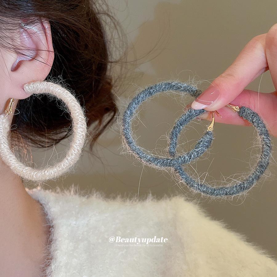 Handmade Knitted Wool Hoop Earrings: Autumn/Winter Fashion, Versatile & High-End Style for Women