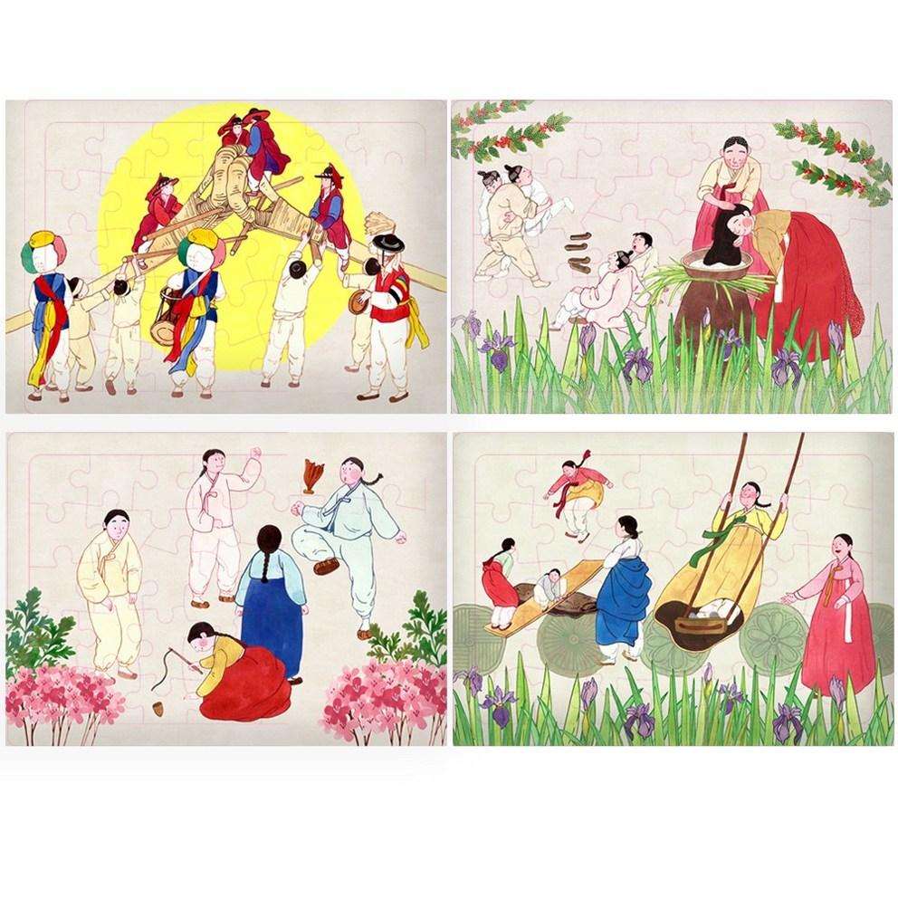 Korean Folk Painting Minhwa Puzzle Set for Seniors - Cognitive Health & Dementia Prevention Gift (4 Designs, 35 Pieces Each)
