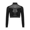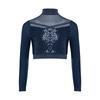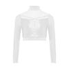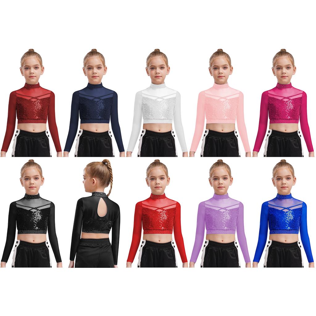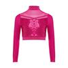 Dziewczęcy Crop Top do Tańca Jazzowego z Wysokim Dekoltem i Długim Rękawem, Przezroczysta Siateczka, Patchwork, Błyszczące Płatki, Kostium na Występ
