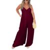 Summer Women Jumpsuit Deep V Neck Sleeveless Backless Wide Leg Loose Pure Color Pleated Spaghetti Strap Casual Vacation Beach Long Jumpsuit