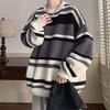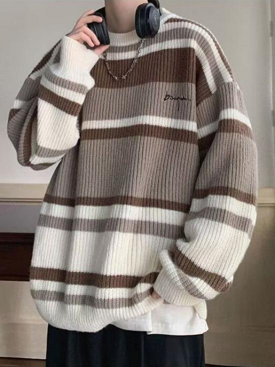 Men's Retro Striped Color-Block Knit Sweater - Casual & Loose Fit for Autumn/Winter