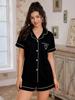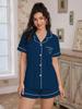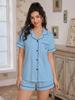Women's home clothing set, cardigan, short sleeved shirt, shorts, summer solid color, minimalist pajamas