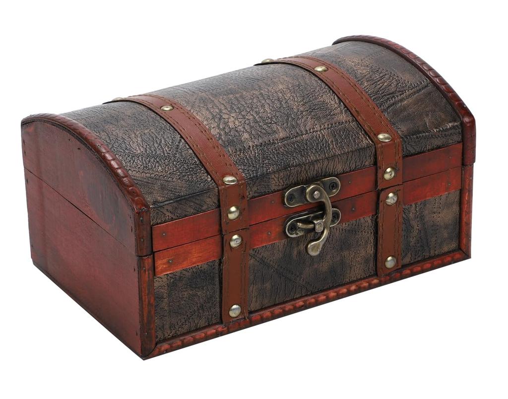 r_planning Antique Retro Wooden Box with Embossed Pu Rivets and Decorative Trinket Box