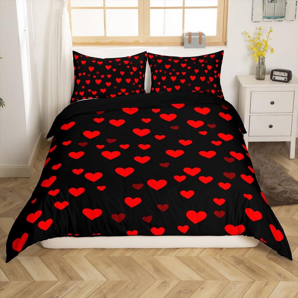 Heart Bedding Love Theme Comforter Cover Set Quilt Cover With 2 Pillowcases For Kids Teens Adults Women Men Queen King Size Twin