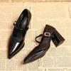 Premium Mary Janes French Vintage Pointed Toe Pumps Chunky Heel Single Strap Shoes Buckle Decor