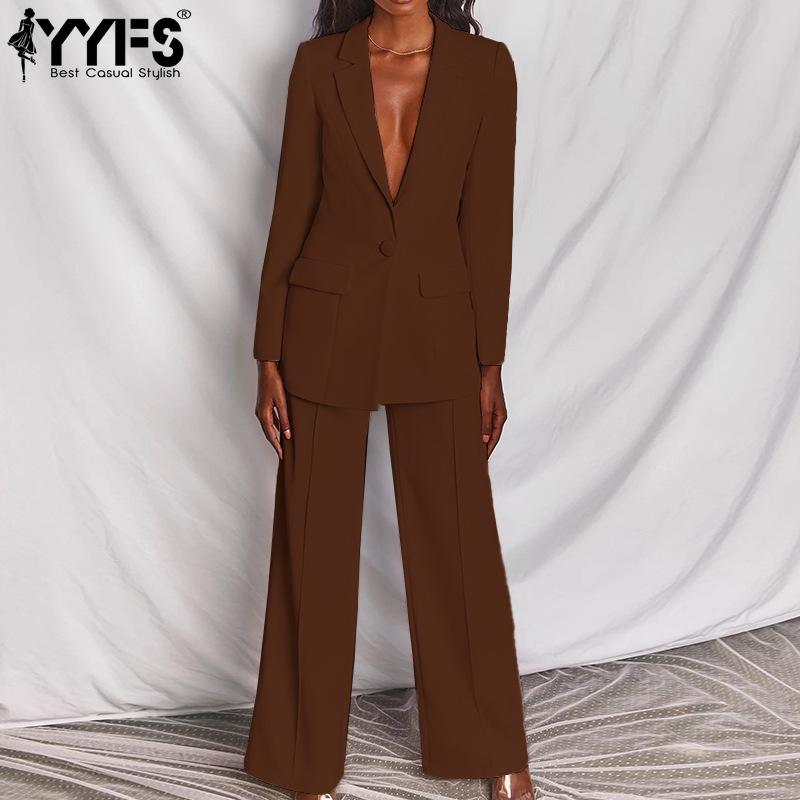 YYFS Moda damska Casual Wiosna Jesień Jednolity kolor Drukuj Długie rękawy Spodnie POLO z dekoltem i spodniami Garnitury