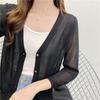 Letni Jedwabny Trójczwarty Rękaw Krótki Dzianinowy Sweterek Kardigan dla Kobiet, Bardzo Cienki Szal Okrycie Wierzchnie, Koszulka do Klimatyzacji, Kurtka Ochronna przed Słońcem,