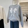 Lace Embroidered Bow Autumn Korean Style Versatile Long-sleeved Pullover Round Neck Sweatshirt Casual Women's Top