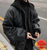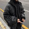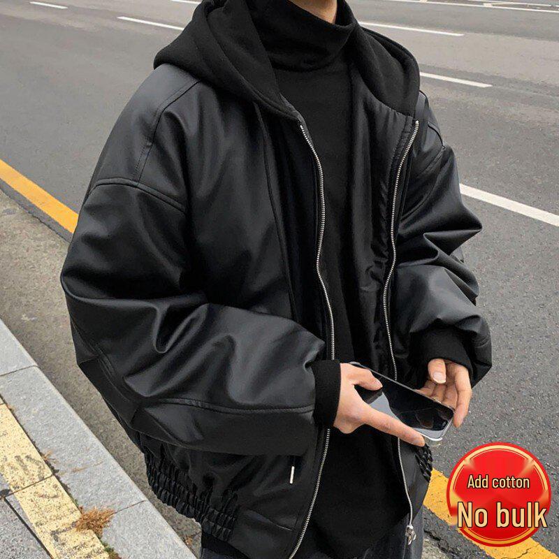 Men's American High Street Rapper Style PU Leather Hooded Jacket - Casual, Loose Fit, Cotton-Insulated Motorcycle Outerwear