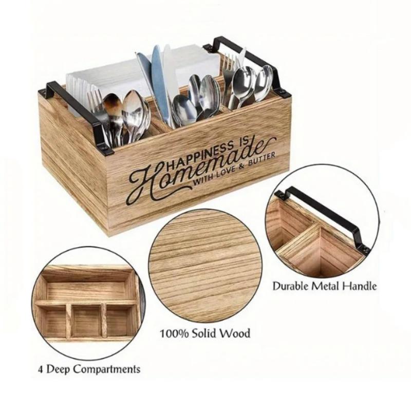 1 szt. Drewniane pudełko do przechowywania noży, widelców, łyżek, pudełko do przechowywania w gospodarstwie domowym, kuchni, na biurko, do kawiarni, pudełko do przechowywania różnych przedmiotów