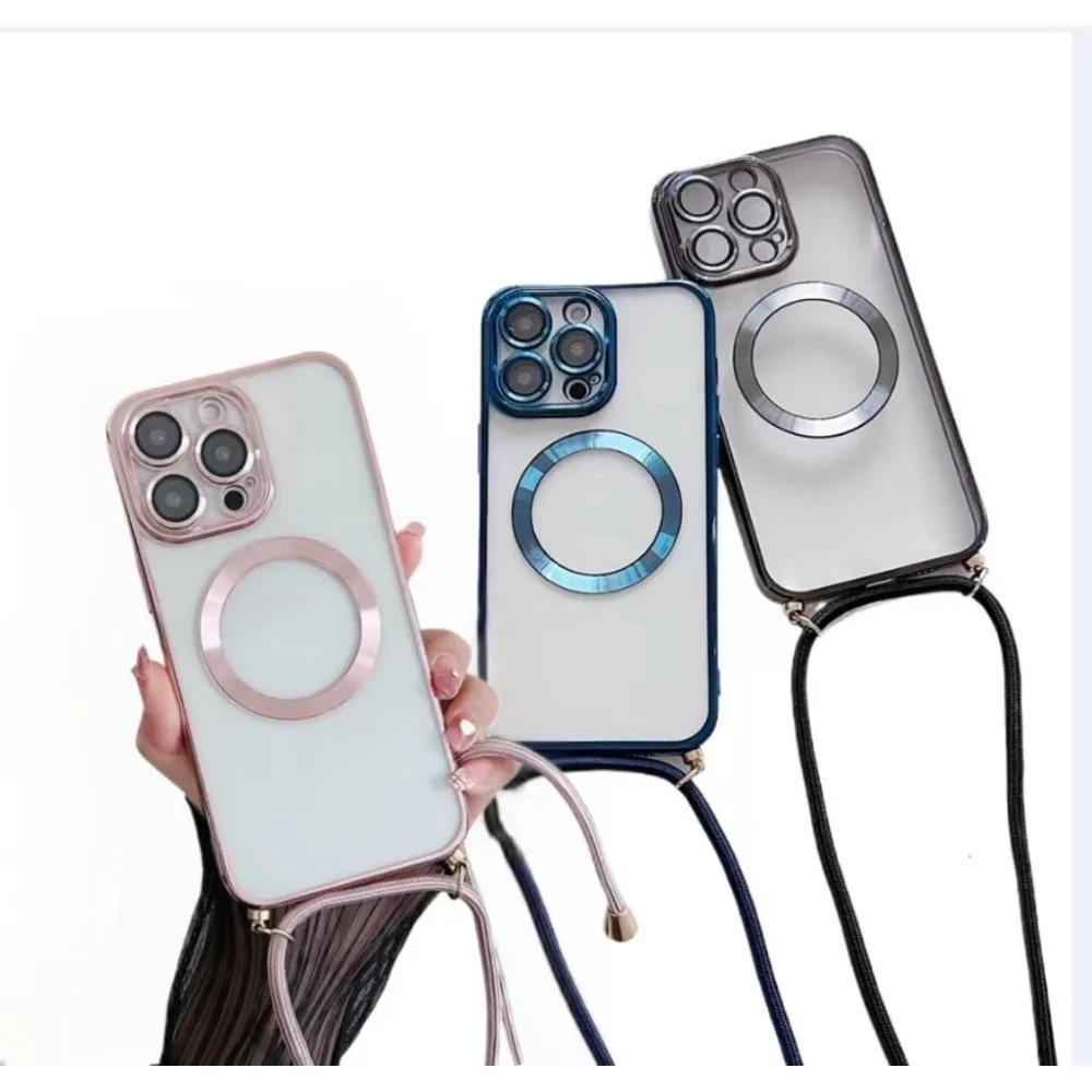 Electroplated transparent magnetic Magsafe wireless charging case suitable for iPhone 16 15 14 12 13 Pro Max neckla case