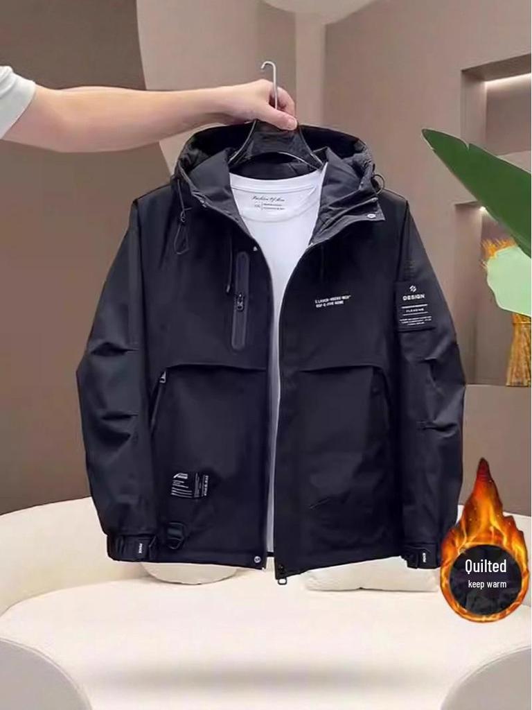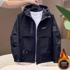 Męska Modna Koreańska Kurtka Robocza Wiatrówka z Kapturem - Stylowa Bawełniana Kurtka na Jesień/Zimę.