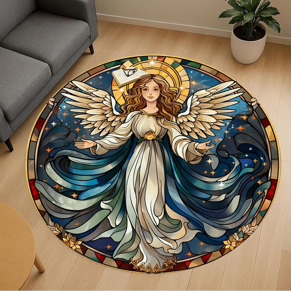 1pc Angel Stained Glass Round Chair mat office Area Rug - Non-Slip, Floor Mat for Office, Bedroom, Ideal home decor gift c0112130