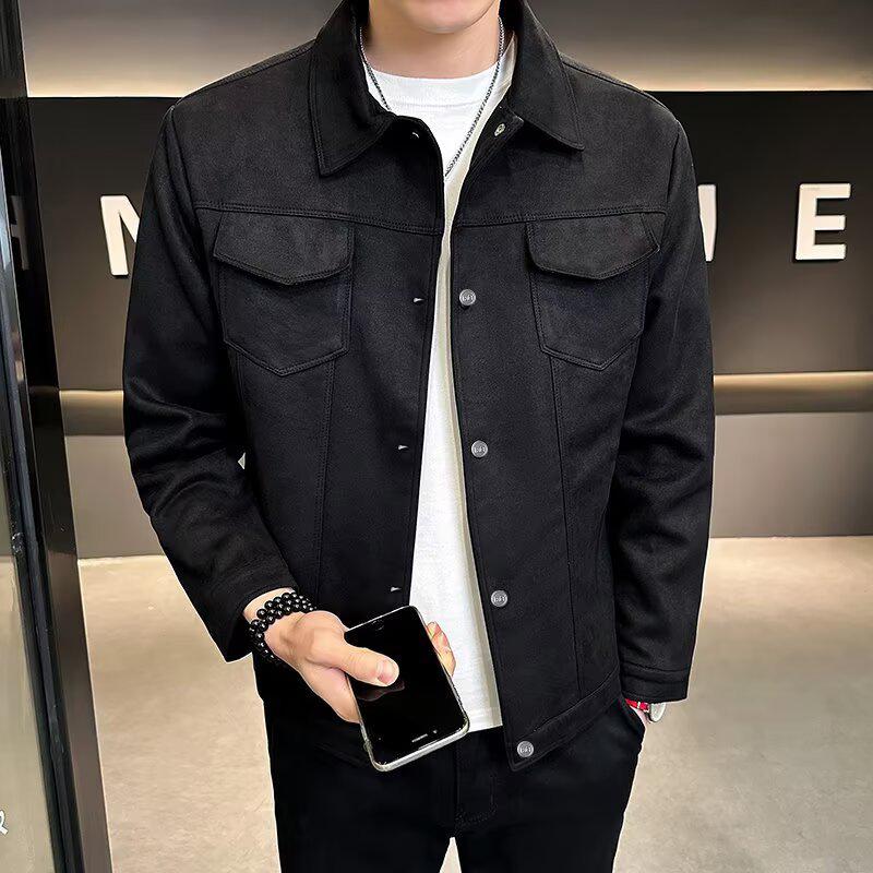 Modna zamszowa kurtka męska 2025: Wysokiej jakości odzież casualowa na wiosnę/jesień