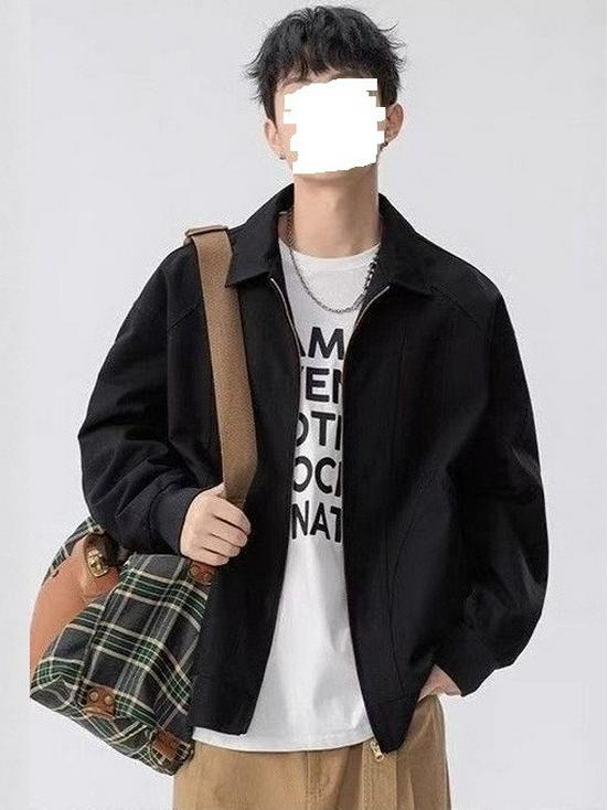 Men's American Retro Versatile Loose Jacket - Autumn Solid Color Fashion with Simple Lapel and Zipper