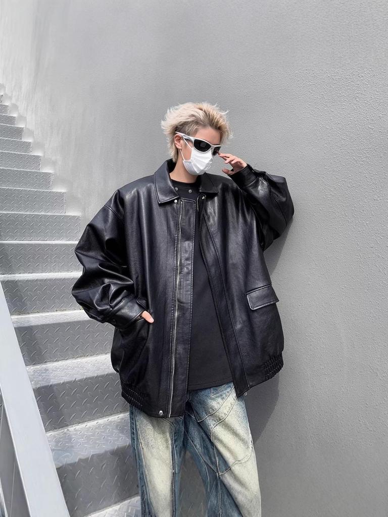 Men's Trendy PU Leather Motorcycle Jacket – Spring/Autumn, High-End Look, Handsome Casual Loose Fit, Lapel Design.