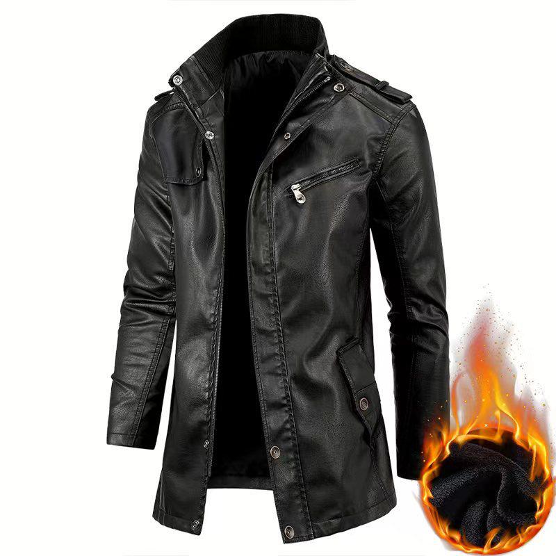 Ta stylowa, wiatroszczelna skórzana kurtka o wydłużonym kroju została zaprojektowana specjalnie dla mężczyzn, którzy cenią zarówno modę, jak i funkcjonalność.. Dzięki eleganckiemu kołnierzowi stójce, ta kurtka zapewnia zadziorny, a jednocześnie wyrafinowany wygląd, odpowiedni na każdą okazję.. Wykonany z wysokiej jakości materiałów, zapewnia doskonałą ochronę przed wiatrem, gwarantując komfort i ciepło.. Idealny do podniesienia poziomu Twojej garderoby dzięki modnemu i ponadczasowemu elementowi.