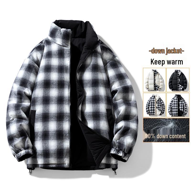 This double-sided puffer jacket for men is designed to keep you warm and stylish during the winter months. Filled with high-quality duck down, it offers excellent insulation to combat the cold. The jacket features a loose fit, allowing for comfort and layering, while the tailor neckline adds a touch of sophistication. Crafted from durable nylon, both the outer material and inner lining ensure long-lasting wear. Perfect for couples who want to coordinate their winter wardrobe, this jacket combines functionality and fashion effortlessly.