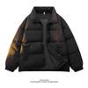 Męska czarna kurtka bomber: Płaszcz puchowy, luźny krój, fajna kurtka baseballowa w amerykańskim stylu