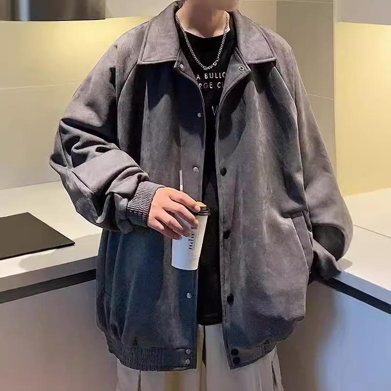 Men's Trendy Hong Kong Style Suede Plush Embroidered Baseball Jacket for Autumn/Winter.