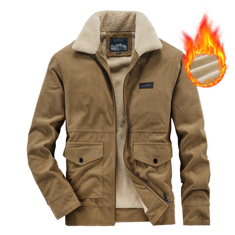 Experience the perfect blend of style and comfort with this corduroy lapel jacket, designed specifically for men seeking to make a statement during the autumn and winter seasons. This casual coat features a tailor neckline and long sleeves, providing a sophisticated and refined look. Made entirely of high-quality corduroy, both the exterior and inner lining offer a well-insulated, thickened feel, ideal for keeping warm in cooler weather. The solid pattern adds to its versatile appeal, making it an essential addition to any modern man's wardrobe.