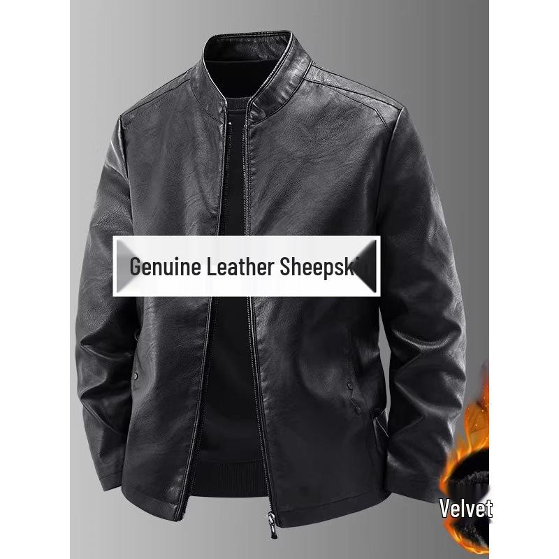 Elevate your style with this sleek and sophisticated men's slim-fit genuine leather jacket. Designed with a stand collar, this jacket offers a modern silhouette that's perfect for both casual outings and motorcycle rides. The solid pattern provides a timeless appeal, while the velvet lining ensures added comfort and warmth. Crafted from high-quality genuine leather, this outerwear piece is not only durable but also adds a touch of elegance to any outfit. Ideal for fashion-forward individuals seeking a versatile addition to their wardrobe.