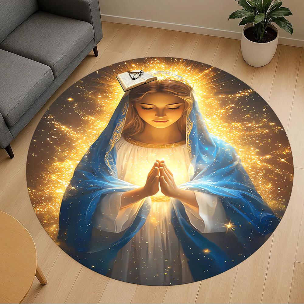 1PC Virgin Mary Halo Light Round Chair mat Area Rug - Non-Slip, Floor Mat for Office, Bedroom, home decor Christmas Gift c0528140
