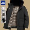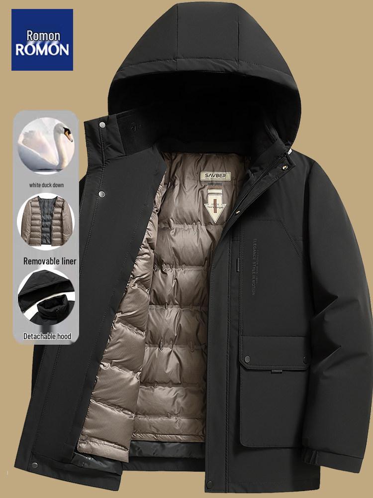 Stay warm and stylish during the colder months with this men's thickened hooded down jacket. Expertly filled with duck down, this solid-patterned jacket offers excellent insulation for those chilly winter days. Designed for men, it features a removable lining and a plush wool fur material that adds an extra layer of comfort and warmth. The outerwear's insulated thickness ensures maximum heat retention, making it a perfect choice for dads who value both function and fashion in their winter wardrobe.