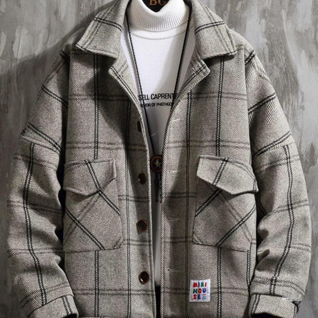 Men's 2024 Spring/Autumn Loose Korean Woolen Coat – Trendy Short Windbreaker