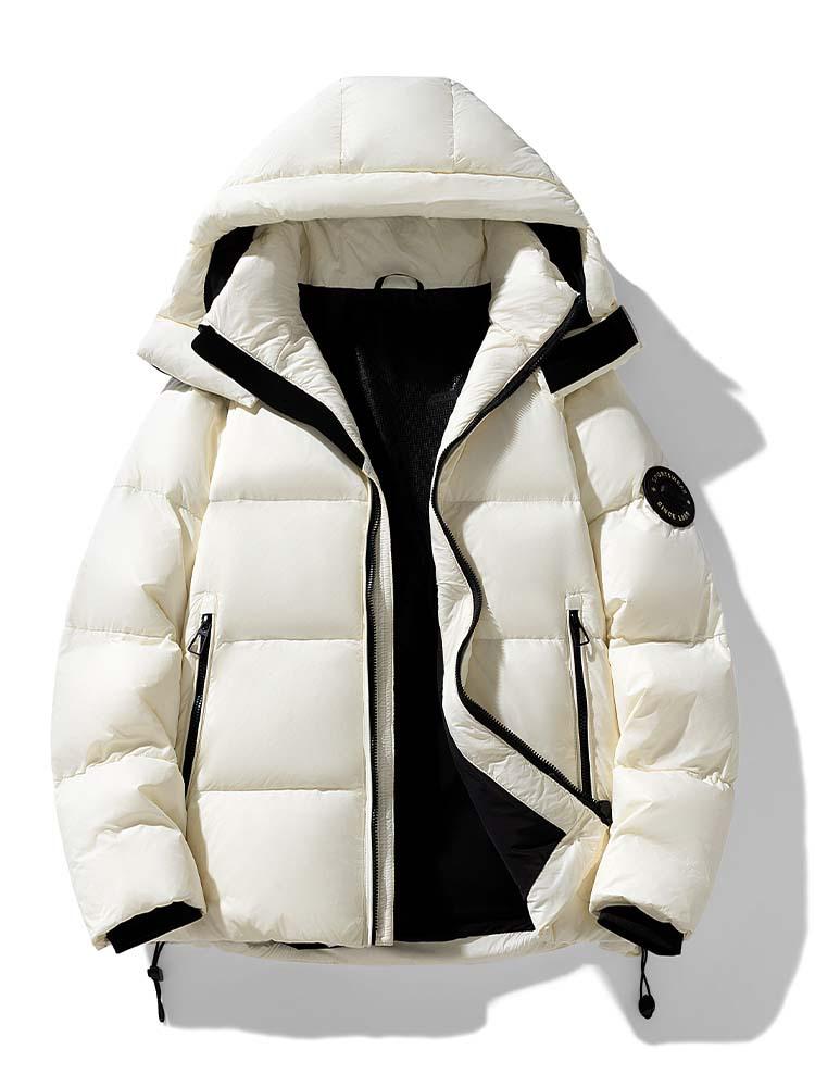 Stay warm and stylish during the colder months with this men's winter puffer jacket. Designed with a trendy hooded style, this outerwear piece is filled with insulating white duck down, making it perfect for battling the chill. The jacket offers a loose fit for comfort and flexibility, while the stand neckline adds a touch of modern elegance. Crafted from durable polyester, the jacket features a solid pattern, embodying a classic and versatile look ideal for various occasions. The polyester fur trim adds an extra layer of coziness, ensuring you remain snug and on-trend throughout the winter season.