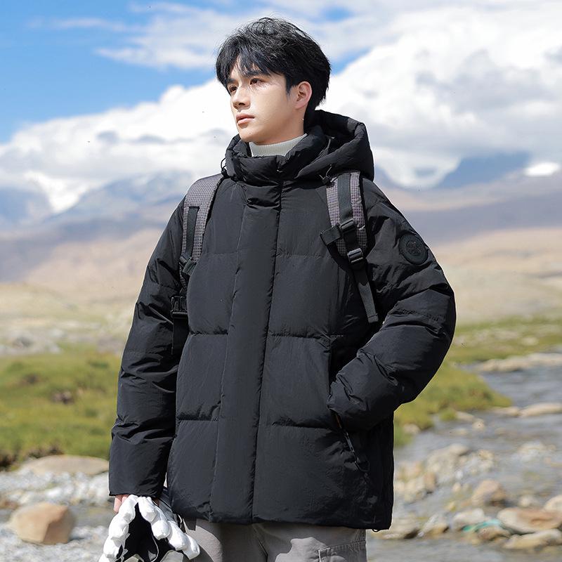 Stay warm and stylish this winter with our men's duck down hooded jacket. Designed for comfort, its loose fit and insulated thickness provide optimal warmth without compromising on style. The jacket features a stand neckline for added protection against the cold, while the solid pattern and nylon material offer a sleek and modern look. Accentuated with chemical fiber blended fur, this outerwear piece is perfect for those seeking both functionality and fashion during the colder months.