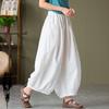 Four Seasons Cotton and Linen Women's Products Sand-washed Linen Bloomers Women's Elastic Waist Loose Casual Pants Nine-point Pants