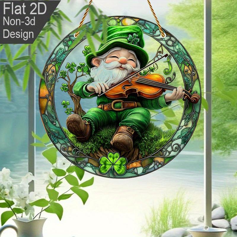 2D Flat St Patrick'S Day Gnome Fiddle Acrylic Decoration Sign, Shamrock Gnomes Design, Suitable for decoration, Wall, porch, Room, Villa, accents Home