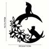 Metal Wall Art Black Cat Crescent Flower Silhouette Durable Indoor Outdoor Home Decor Gift for Cat Lovers