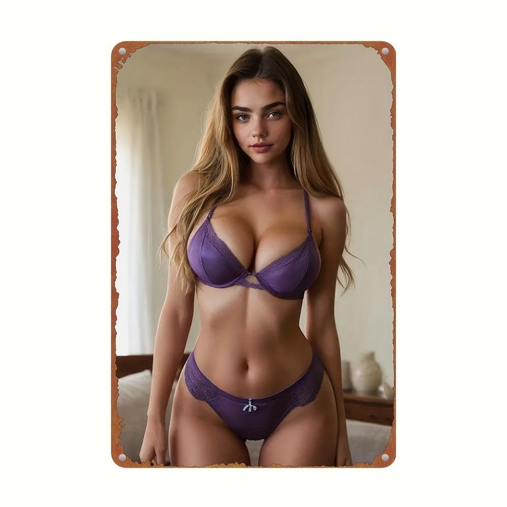Bohemian Fioletowa Metalowa Sztuka Ścienna Retro Sylwetka Kobiety Druk UV Aluminium Dekoracja do Domu Sypialni Salonu na Święta