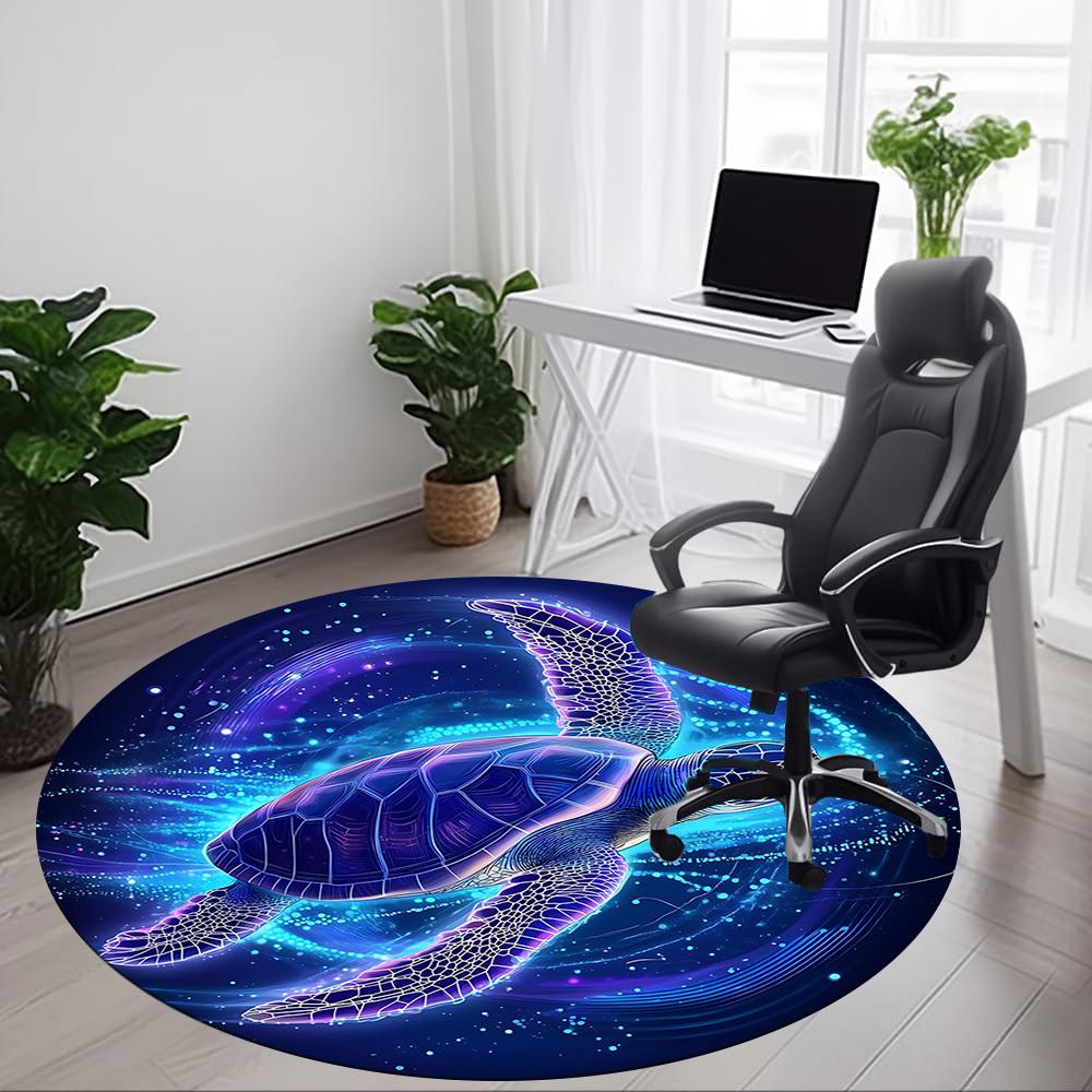1pc Sea Turtle Chair Carpet for Office, Round Polyester Mat, Indoor Decor for Office, Easycare Fabric, Washable Non-slip Area Carpet