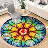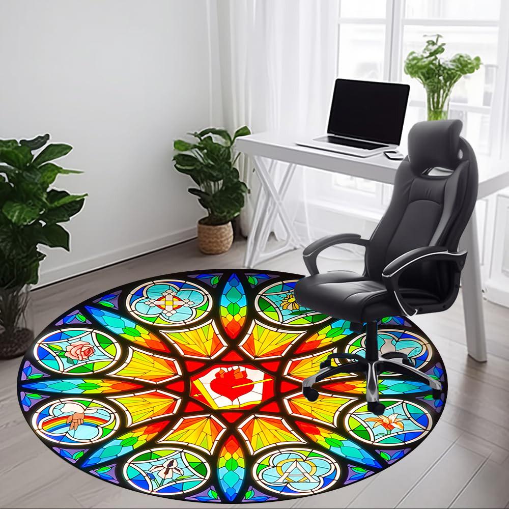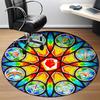1pc Stained Glass Window Chair Carpet for Office, Round Polyester Mat, Indoor Decor for Office, Easycare Fabric, Washable Non-slip Area Carpet