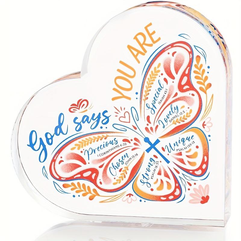 2D Flat, Christian Bible Verse Heart Acrylic Tabletop Decor Plaque, Butterfly Design, Home Decor Plaque Hanging Wall Art Decorative Garden Decoration