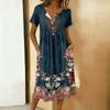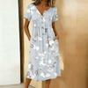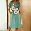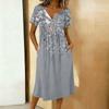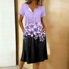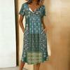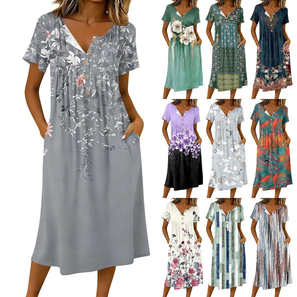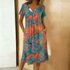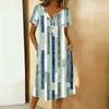 Modna damska sukienka retro z nadrukiem, okrągłym dekoltem, krótkim rękawem, zapięciem na guziki, o średniej długości, codzienna