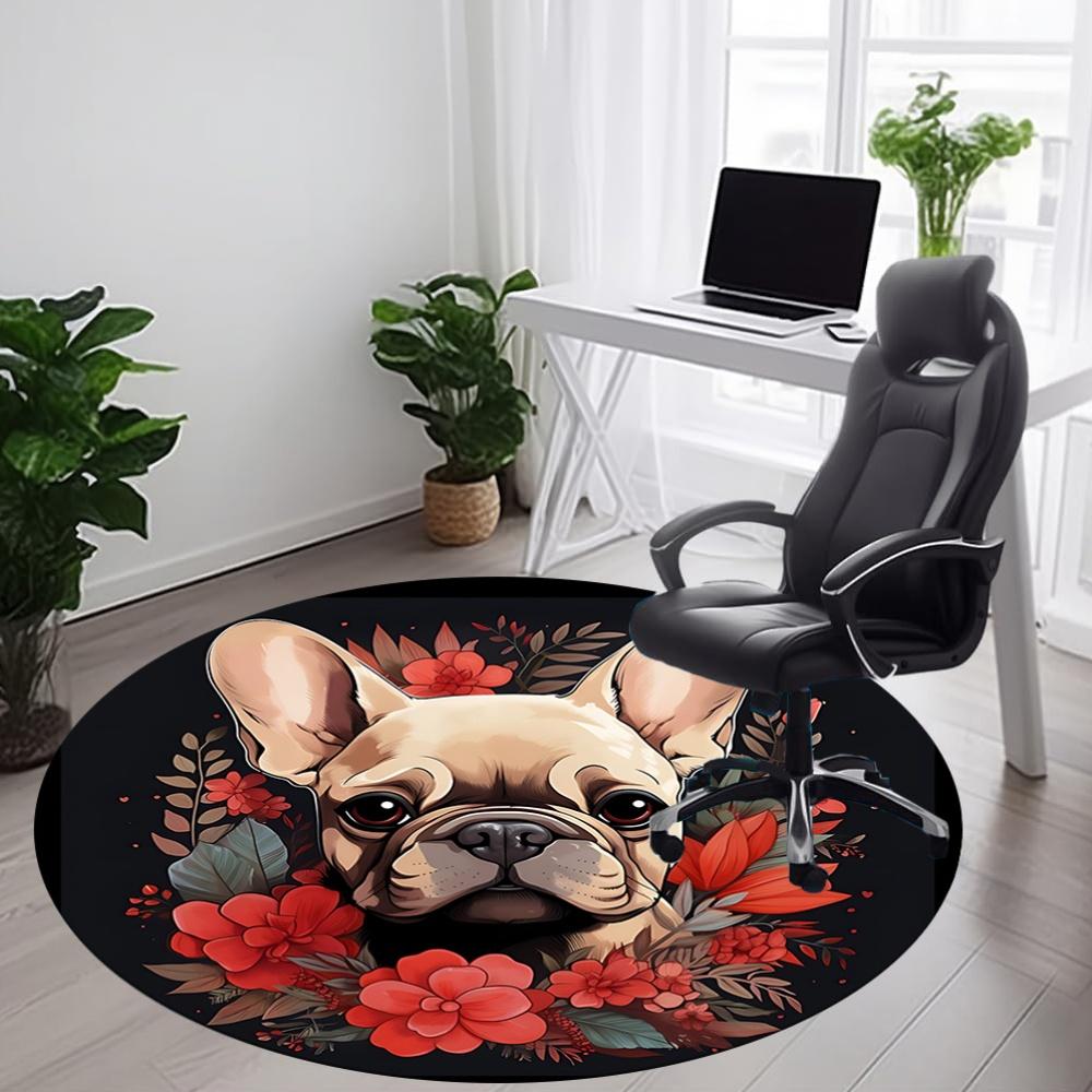 1pc French Bulldog Chair Carpet for Office, Round Non Slip Durable Large Size Office Carpet, Suitable for Office
