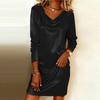 Stylowa, Elegancka I Wyrafinowana Sukienka Midi Z Długim Rękawem I Dekoltem Dla Kobiet