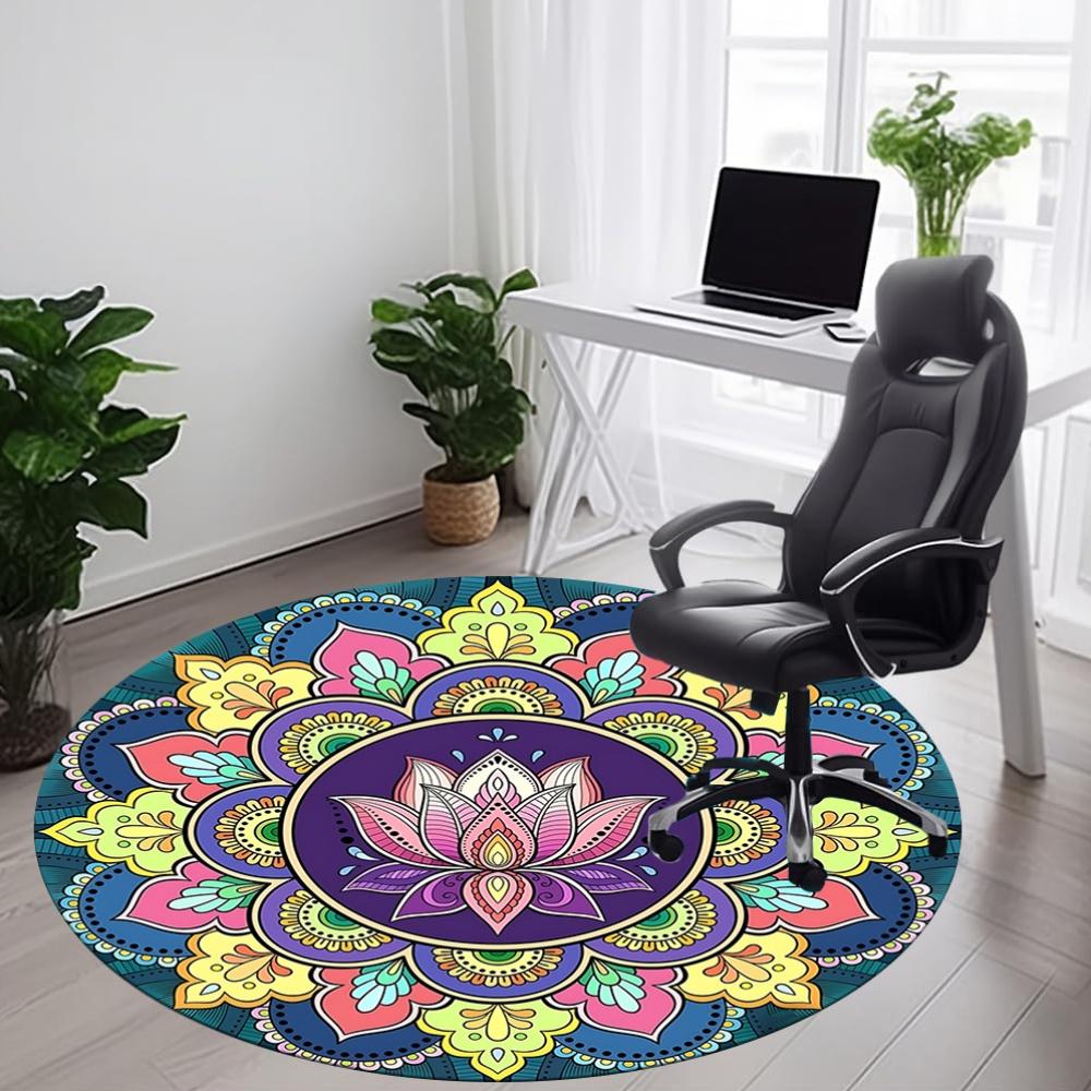 1PC Mandala Art Office Round Rug, Non slip, Soft and Durable Office Rug for Interior Decoration, Perfect for Office
