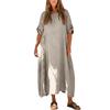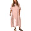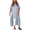 Women's Casual Loose Fit Short Sleeve Long Length Cotton Linen Split Dress