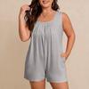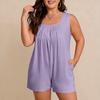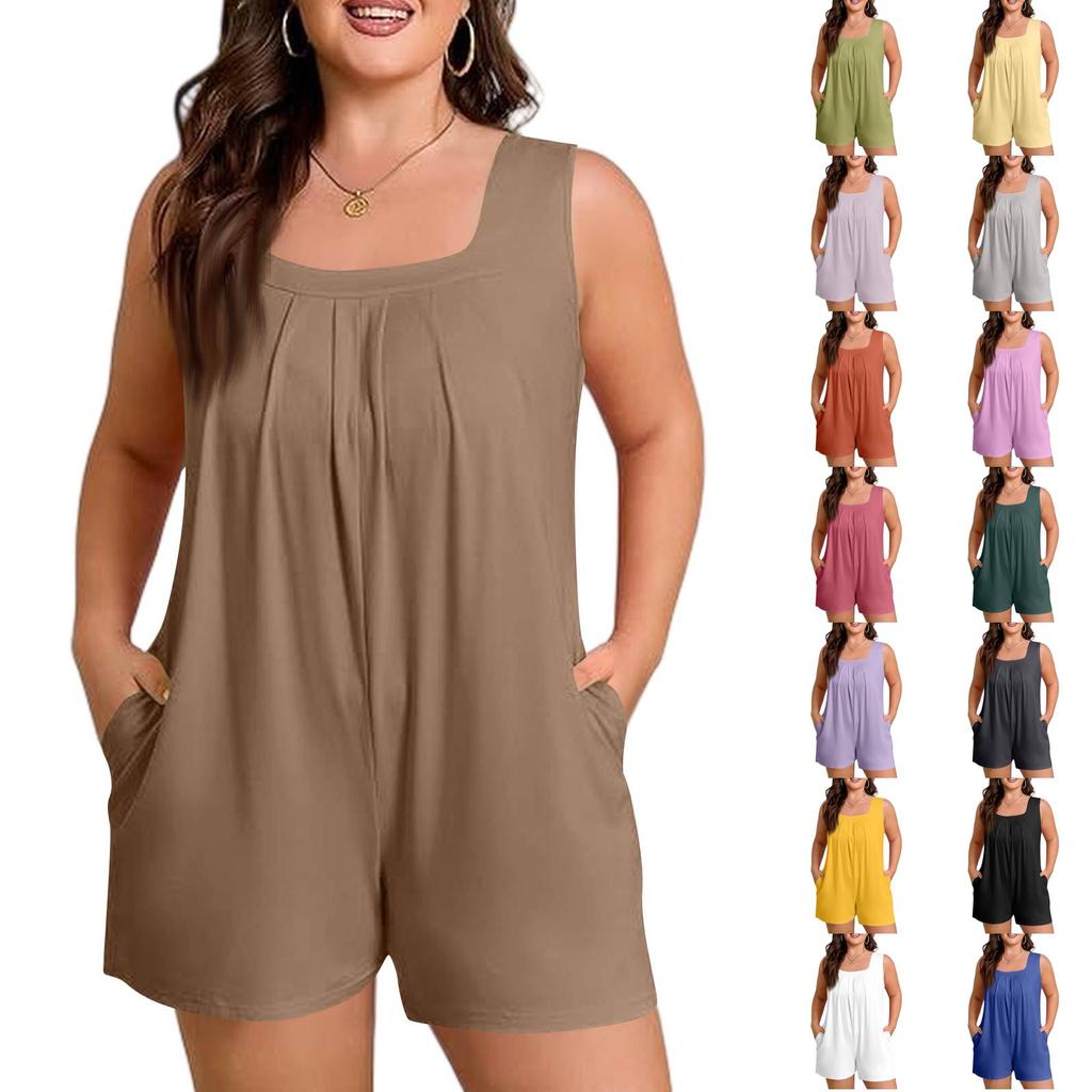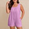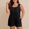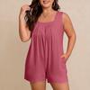 Women's Plus Size Casual Tank Top Sleeveless Pocket Jumpsuit Shorts Set