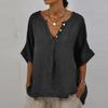 Women's Color Casual Fashion Pullover With Mid Sleeve Cotton And Linen Top
