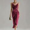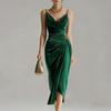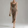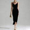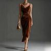 Modna i casualowa damska welurowa sukienka bez rękawów z długim rozcięciem, podkreślająca figurę
