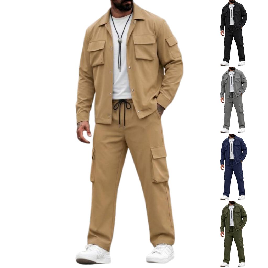 Men's New European And American Multi-pocket Casual Workwear Biker Jacket Set