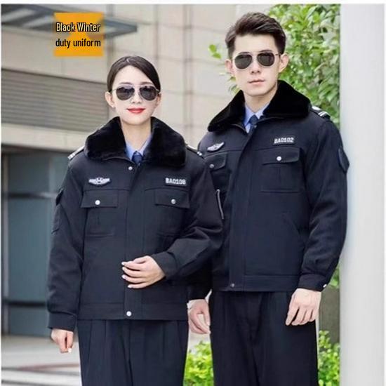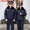 Zimowy mundur służbowy ochrony: Pogrubiony Zestaw Bawełnianej Kurtki i Płaszcza na Ciepło i Ochronę przed Zimnem.