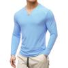 Męska casualowa koszulka sportowa i fitness, rozmiar plus, męska elastyczna i wygodna, z długim rękawem i dekoltem w serek, bazowy top